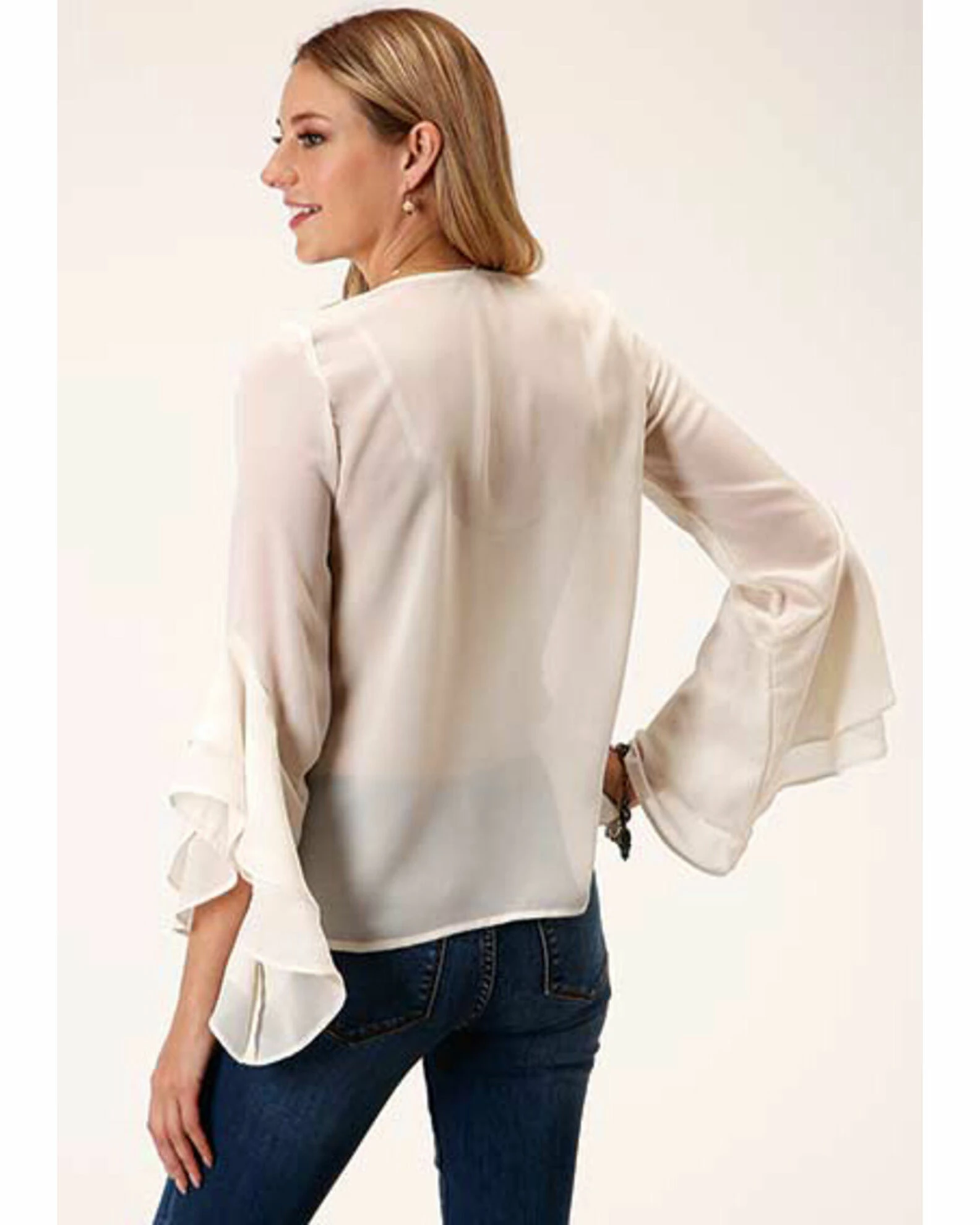 Roper Women’s White Long Sleeve Georgette Ruffle Blouse For Women’s