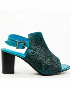 Roper Women’s Burnished Turquoise Tooled Sandals – RoundĀ Toe Blue